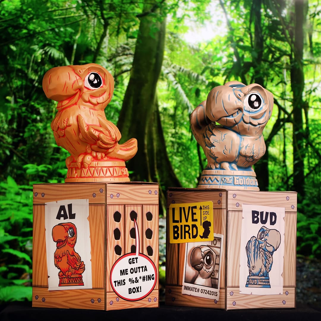 These new bird mugs stand approximately 6.5″ tall (one is slightly taller and one is just a smidge shorter). They hold 16 fl. oz. of cocktail. Together Al & Bug retail for $130, or they can be purchased separately. Both mugs are available for purchase through the official website of The Golden Tiki.