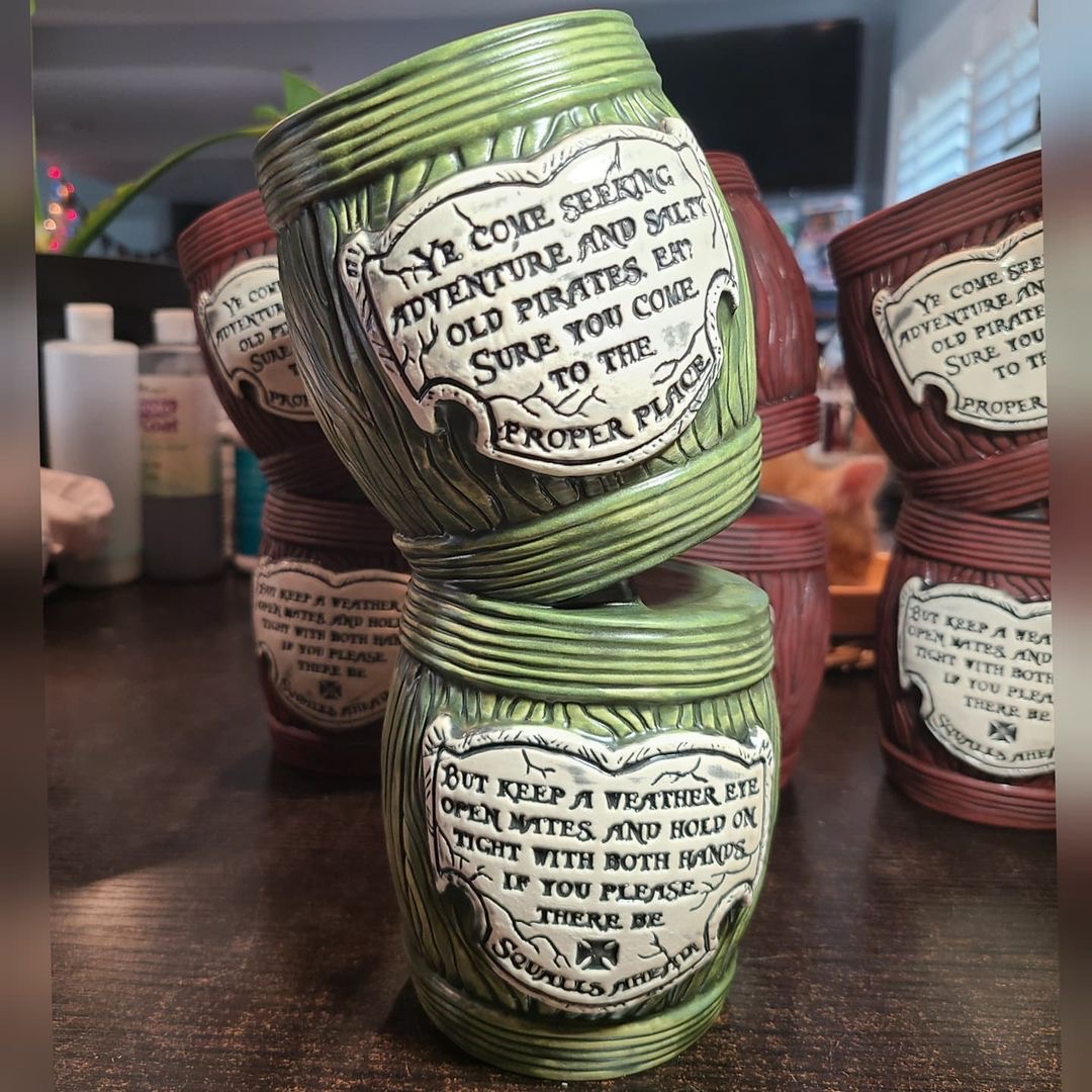 Tiki Tiki Monster is a dynamic duo from SoCal inspired by Tiki culture, mugs, and drinks! They will have several original designs on hand, including a complete turtle bowl and a Moai head that has a scenic palm tree mural on its back side. Tiki Tiki Monster also created a 2nd Edition Sunken Explosivo Keg mug for Tahiti Gil Trading, which is inspired by Pirates of the Caribbean and is available for preorder through Tahiti Gil’s website with pick-up in San Diego.
