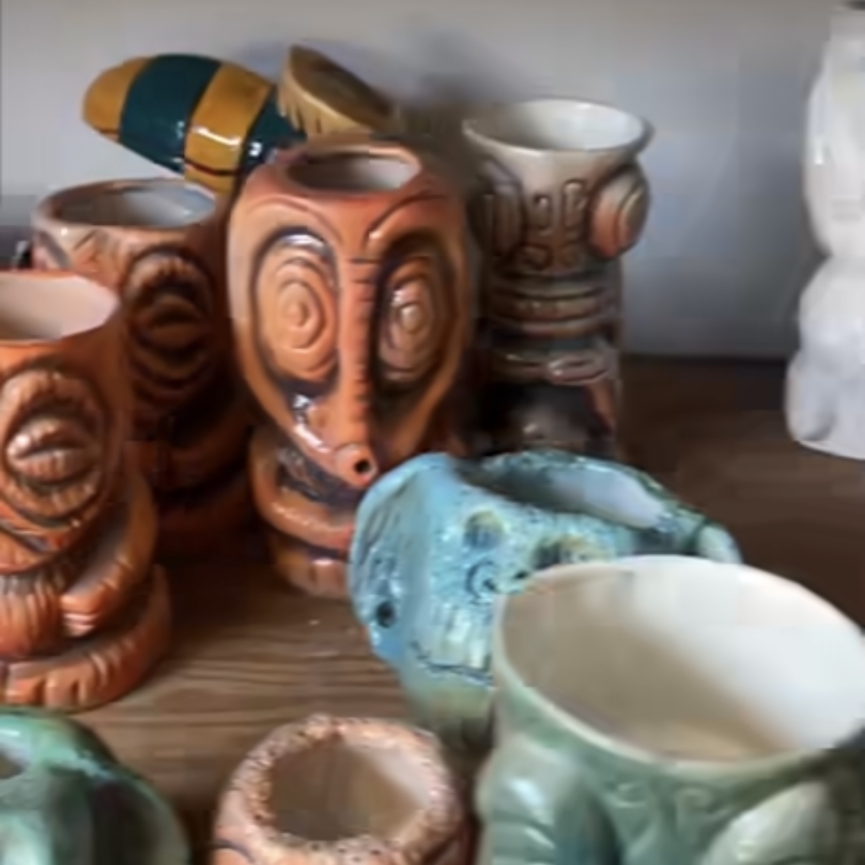 David Outl1n3 has been sculpting for over a decade and started vending Tiki events in 2013. David will be vending his own wares at the Tiki Oasis Marketplace and he has prepared dozens of mugs for the event in multiple different designs. Tiki mugs in rustic, matte glazes that give the appearance of weathered wood are his specialty.