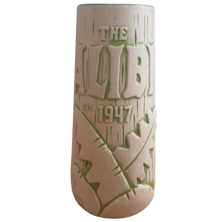 Unique Markings: “THE ALIBI EST. 1947” is written on the back of this mug and “MUNKTIKI IMPORTS 2016©” is written on the bottom of this mug.