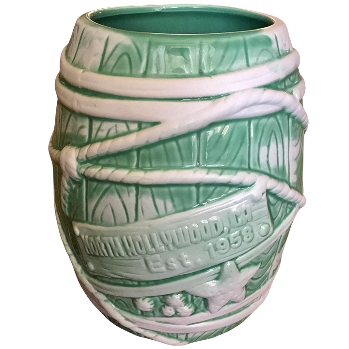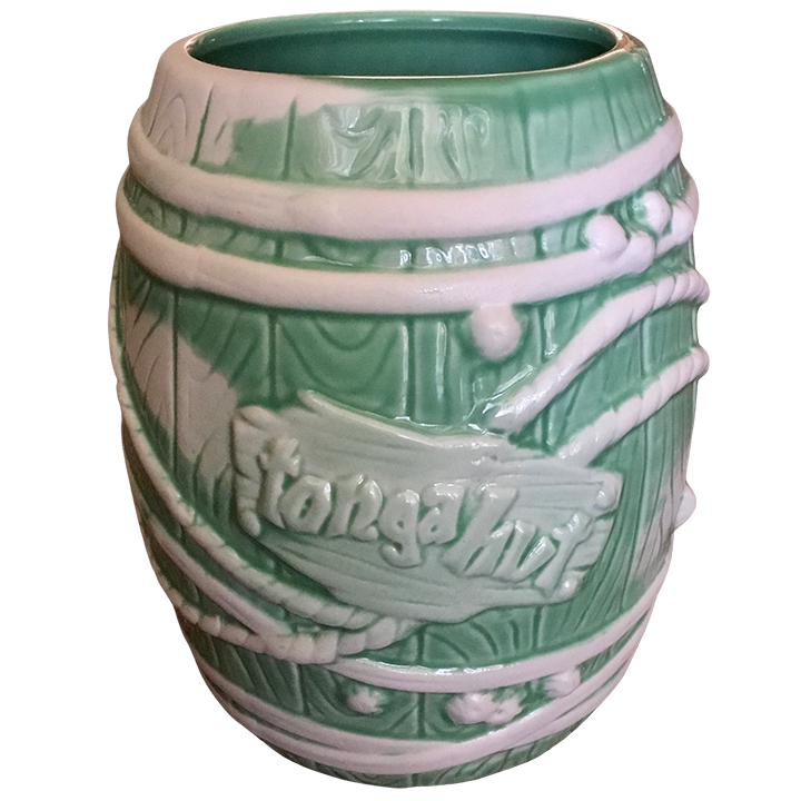 This ceramic tiki mug depicts a classic rum barrel wrapped in ropes. It is larger than previous rum barrels released at Tonga Hut.