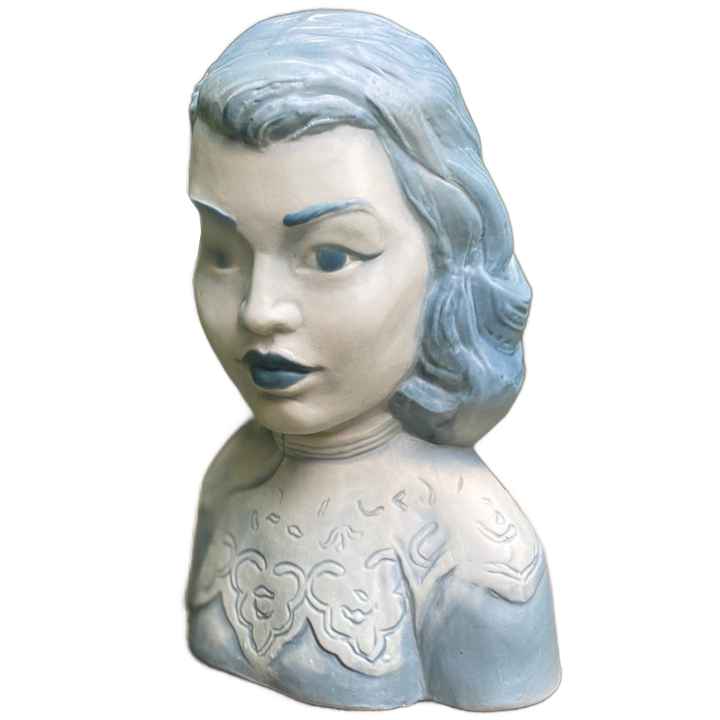 Eekum Bookum’s Blue Girl mug is inspired by Vladimir Tretchikoff’s 1952 Chinese Girl painting. The design was initially released at “Exotica: Music For Your Eyes”, a pop-up gallery in Palm Springs, California, featuring original art by James Owens. This Second Edition of the mug was released later at The Reef in Palm Springs on June 25, 2022. This one has a subtle blue and white glaze.