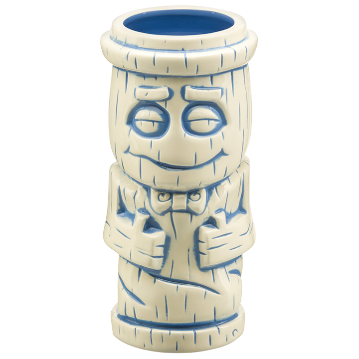 This ceramic tiki mug depicts the cartoon ghost featured on the front of General Mills’ cereal named Boo-Berry.