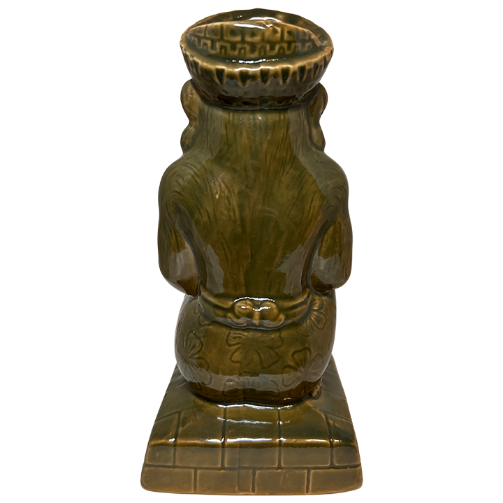 This Booze Cruise cocktail mug is inspired by a statue that was featured on Walt Disney’s Jungle Cruise attraction. The statue has since been removed from the ride during a remodel, but it depicted a kneeling monkey with ear piercings wearing a hat. This mug was originally sculpted by The Green Tiki and sold as a preorder through Kaku Kaku’s Etsy shop, but numerous production setbacks waylaid the project. Lost Temple Traders then picked up the project and released the mug in early 2022. The final version was sculpted by Munktiki Imports.