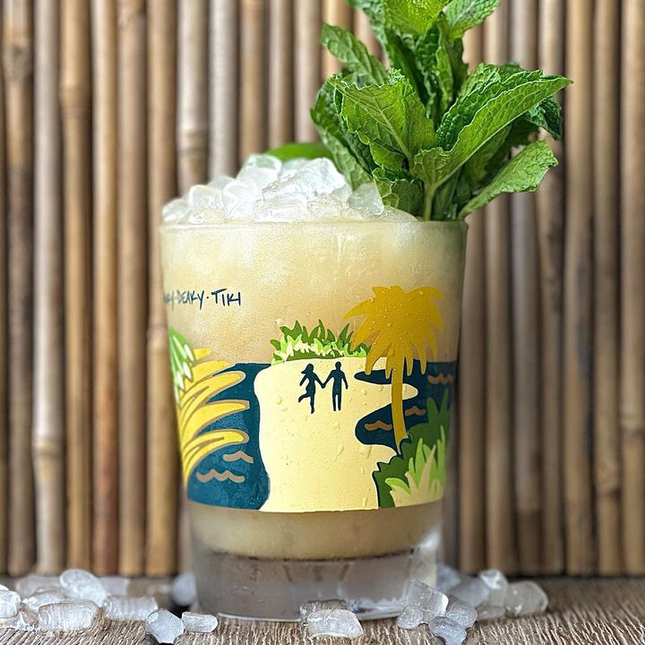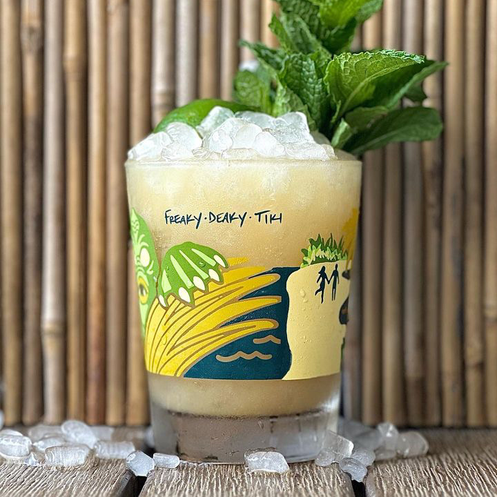 This set of two Mai Tai glasses was generously donated from the shop of Freaky Deaky Tiki to raise funds for Hawaii. 100% of the net proceeds from these glasses will be donated to support relief efforts in Hawaii after the recent devastating wildfires. The glass holds 15 fl. oz. and it depicts the Creature from the Black Lagoon creepin’ around the beach.