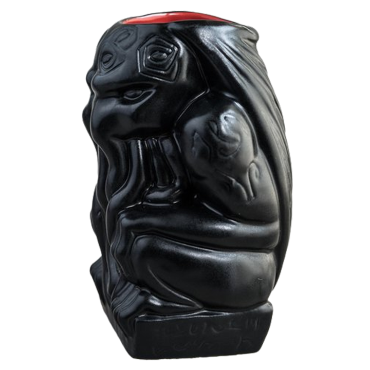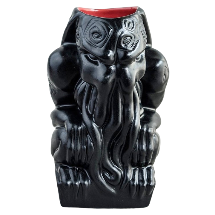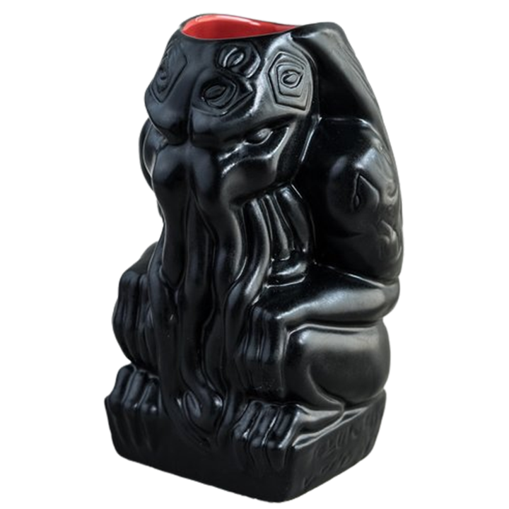 This handmade tiki mug is based on H.P. Lovecraft’s original sketches of mighty Cthulhu. Polynesian tattoo imagery has been incorporated into the design.
