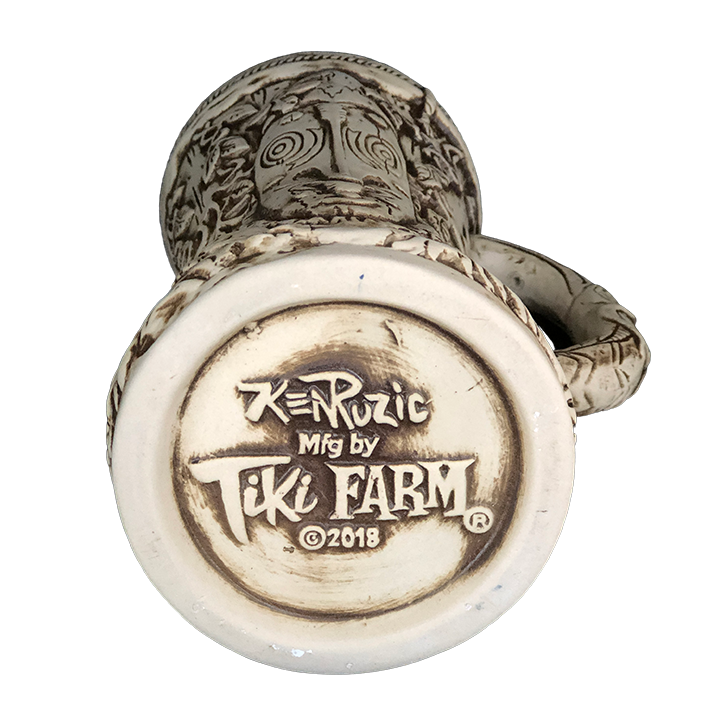 Unique Markings: “The Inferno Room” is written on the front of this mug and “Ken Ruzic Mfg by Tiki Farm® ©2018” is written on the bottom of this mug.