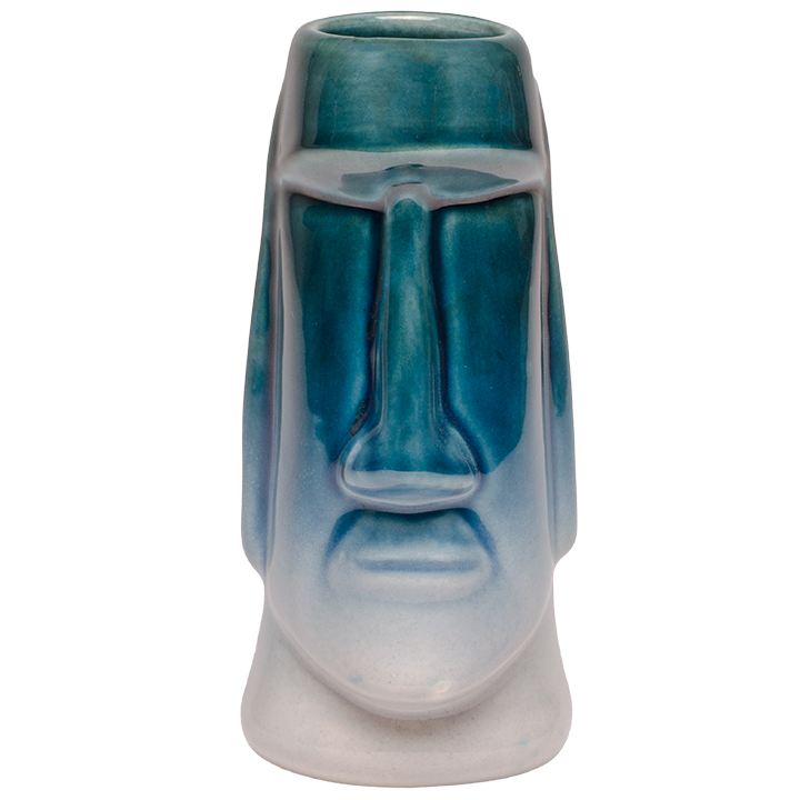 This ceramic mug depicts a Moai head similar to those commonly found on Easter Island.