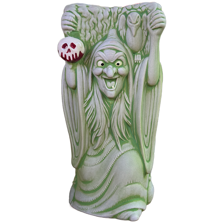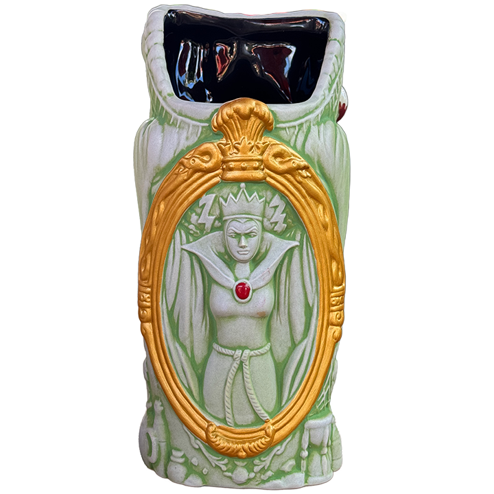 This ceramic cocktail mug was released by Trader Sam’s Grog Grotto. It depicts the witch with her poison apple from Walt Disney’s original animated film Snow White and the Seven Dawrfs. The back of the mug depicts the evil queen in her mirror. It was designed by Florian Bertmer and manufactured by Tiki Farm.