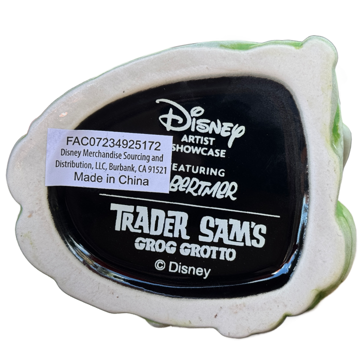 Unique Markings: “Disney Artist Showcase Featuring Florian Bertmer Trader Sam’s Enchanted Tiki Bar Disney” is written on the bottom of this mug, along with a sticker that reads “FAC07234925172 Disney Merchandise Sourcing and Distribution, LLC, Burbank, CA 91521 Made In China”.