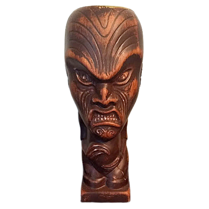 This tiki mug depicts a standing tiki warrior ready for a fight. The haka is a ceremonial dance in Māori culture.