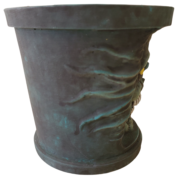 Color: Blue/green on black, with yellow eyes, and mostly white teeth except for one gold tooth