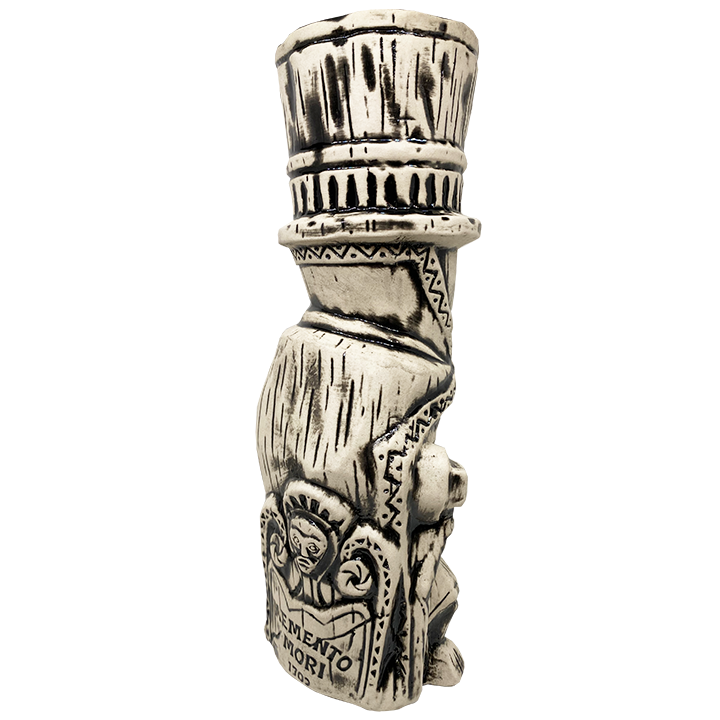 After briefly appearing in Walt Disney’s The Haunted Mansion when it opened in 1969, the inspiration for this tiki mug, the Hatbox Ghost, was removed from the attraction suddenly and without notice. Explanations for his abrupt departure are plentiful and remain a mystery, however the Hatbox Ghost has finally returned for your ghoulish enjoyment. Forever immortalized in four different tiki mugs, the Hatbox Ghost hopes to materialize in your home…. that is unless you’d rather join him and the 999 haunts at the Haunted Mansion.