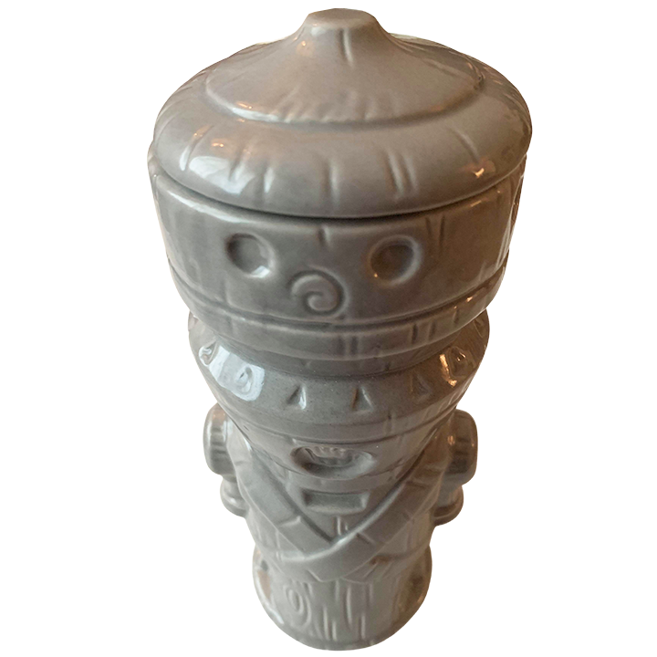 This ceramic tiki mug is an officially licensed depiction of IG-11, a bounty hunting droid featured in Star Wars: The Mandalorian.