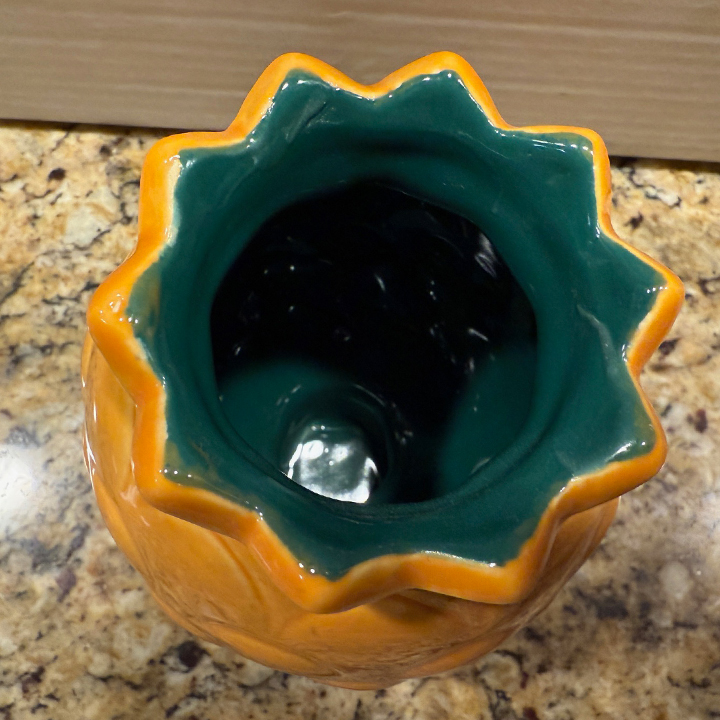 This ceramic cocktail mug was generously donated from the private collection of Kristie Scott to raise funds for charity. 100% of the net proceeds from this mug will be donated to support relief efforts in LA after the recent devastating wildfires. This mug depicts a small bird with a pineapple shaped head. It was designed by Jeff Granito and sculpted by THOR for Tikiland Trading Co.