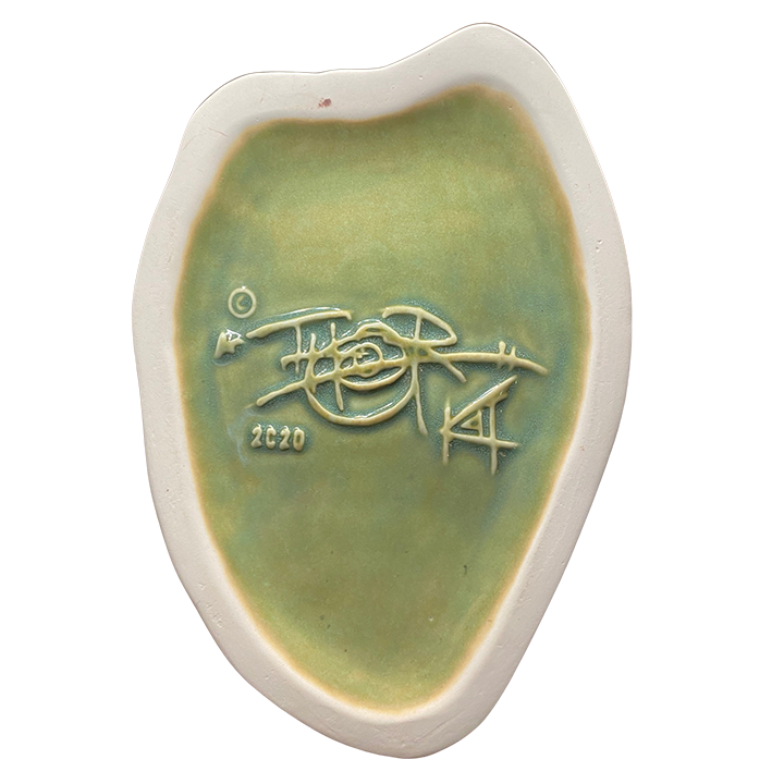 This ceramic tiki mug depicts a boat sailing in rough ocean waters. It celebrates the famous journey that took place in 1947 across the Pacific Ocean from South America to the Polynesian islands. The ship set sail to disprove skeptics that long distance travel by primitive boat was indeed possible.
