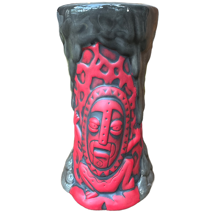 RUN FOR YOUR LIVES! The top of this mug appears to be overflowing with lava. Tiki figures adorn the front and back of this mug and both figures have their arms raised to the heavens. One is wearing a mask and the other a headpiece. Perhaps you can please the Gods by finishing this cocktail and prevent a natural catastrophe? If not, at least add a glow cube and make the contents of this tiki mug look like burning lava.