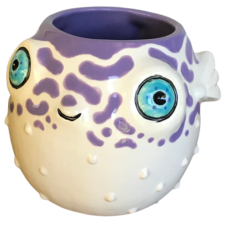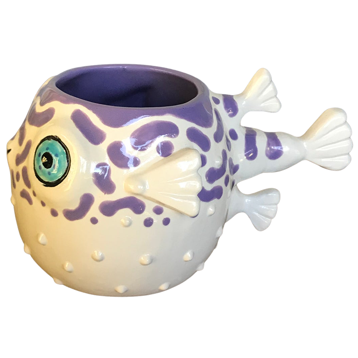 This ceramic tiki mug depicts a smiling pufferfish in an engorged state.