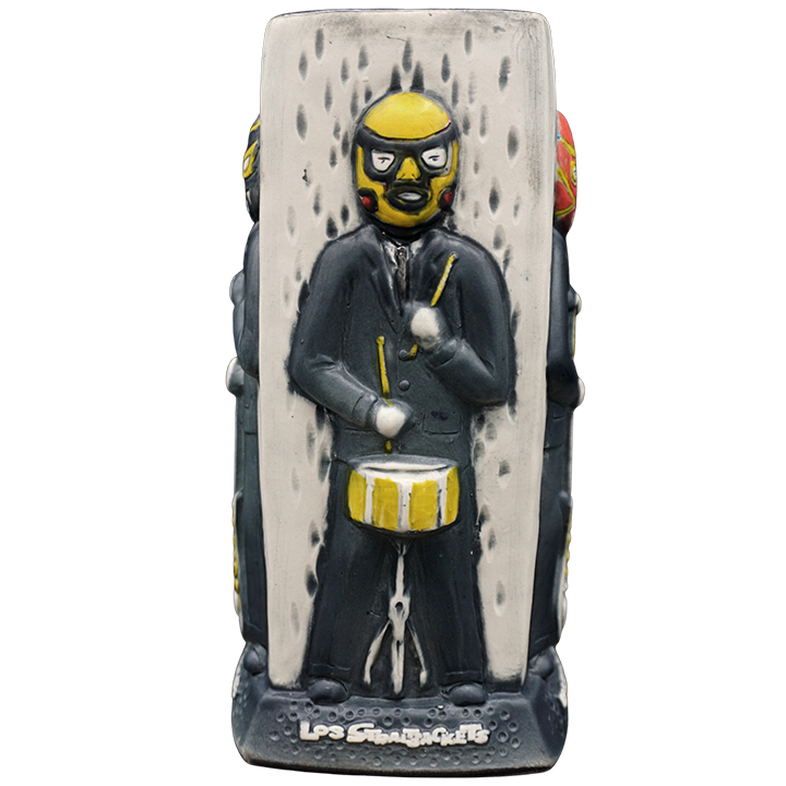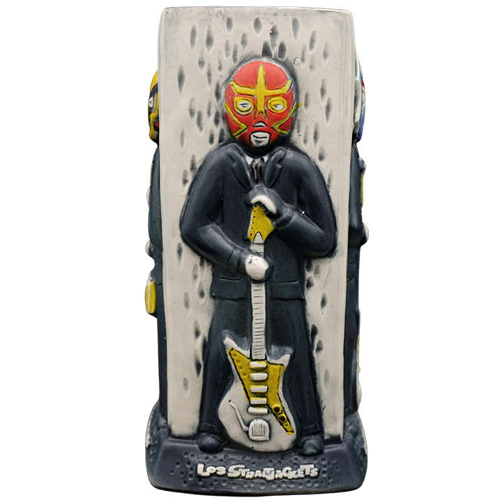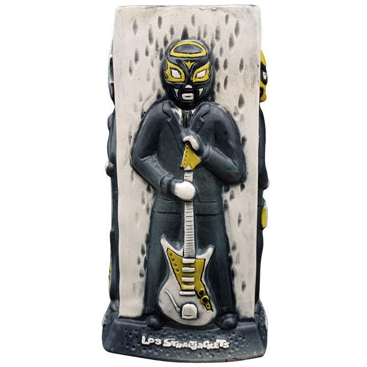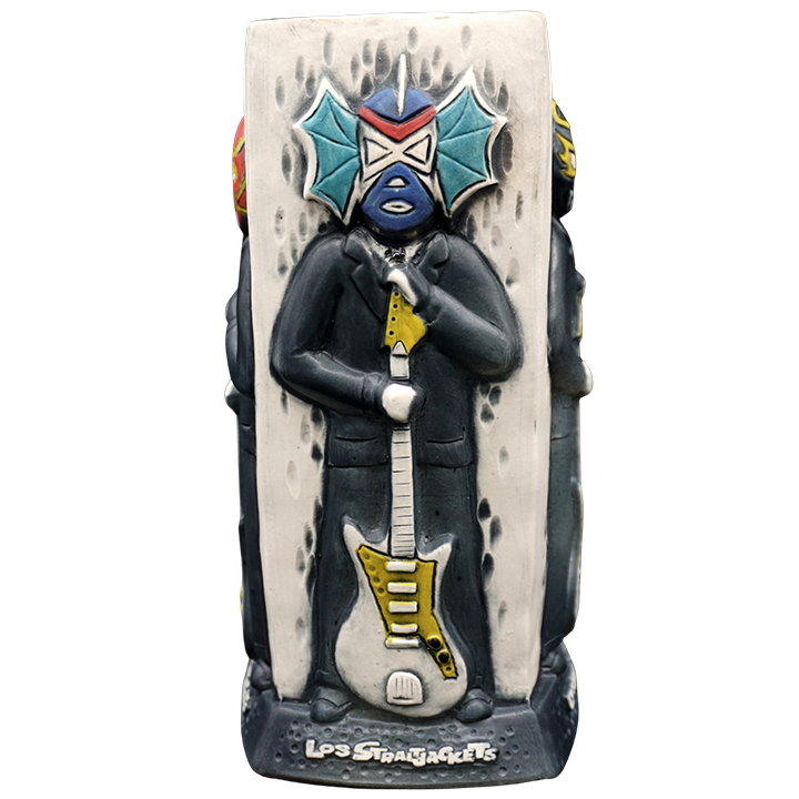 This four-sided ceramic cocktail mug depicts the band members of the Los Straitjackets.