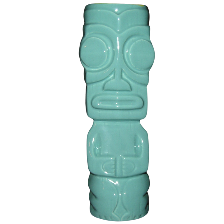 This ceramic mug was sold as a three pack with mugs Mutuaga and Kahalu’u, and a miniature print. They were released in celebration of a painting named “The Night of the Tiki.” This mug depicts a standing Tiki in SHAG’s signature style with bulging circular eyes and a wide mouth.