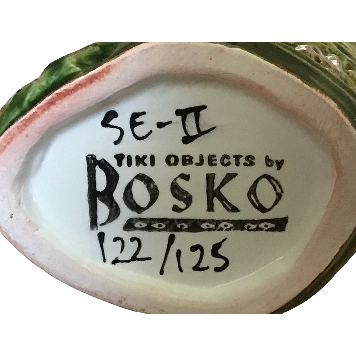 Unique Markings: “False Idol” is written on the back of this mug and “Tiki Objects By BOSKO” is written on the bottom of this mug, along with an edition number.