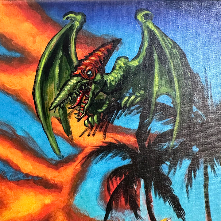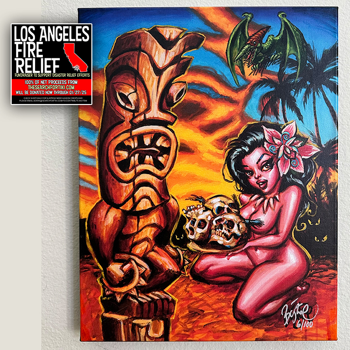 This canvas giclee print with ARTIST REMARQUE (original art pterodactyl added to print) was generously donated by artist BigToe to raise funds for charity. 100% of the net proceeds from this print will be donated to support relief efforts in LA after the recent devastating wildfires.