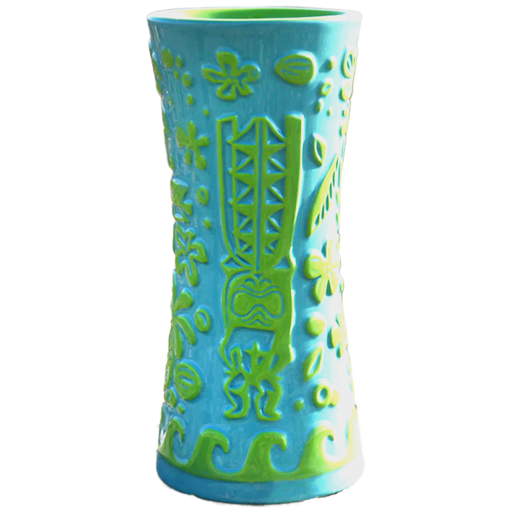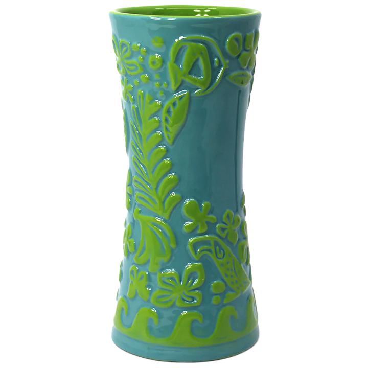 Inspired by ocean breezes, tropical gardens, exotic tropical locales and the flora and fauna that greets you is the “Paradise Beckons” Tiki mug designed for Tiki Farm by renowned Japanese Tiki artist, Mookie Sato.
