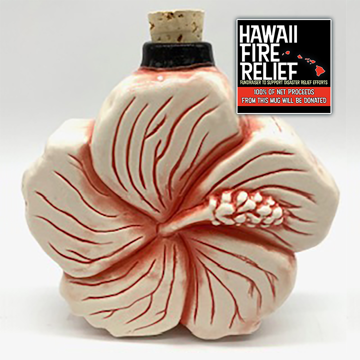 This ceramic cocktail flask was generously donated from a private collection to raise funds for Hawaii. 100% of the net proceeds from this flask will be donated to support relief efforts in Hawaii after the recent devastating wildfires. This flask is shaped like a hibiscus flower and it was made by Taboo Relics in Florida.