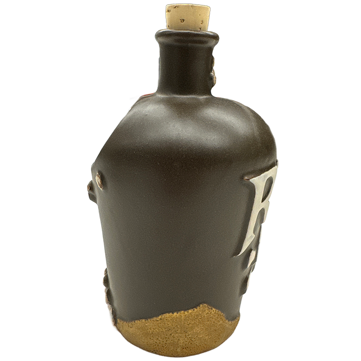 This ceramic cocktail mug was designed by Dave “Squid” Cohen for Lost Temple Traders and it depicts a rum bottle recently recovered from and preserved by the ocean floor. The mug is labeled “RUM” with a skull and crossbones logo and it is covered in barnacles. This is the 3rd Edition of the mug featuring a SQUID Ink Black glaze.
