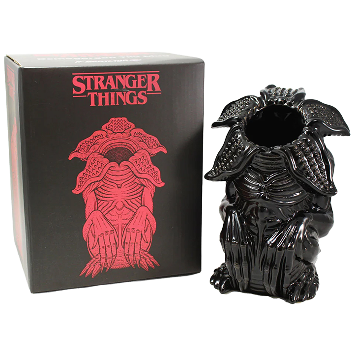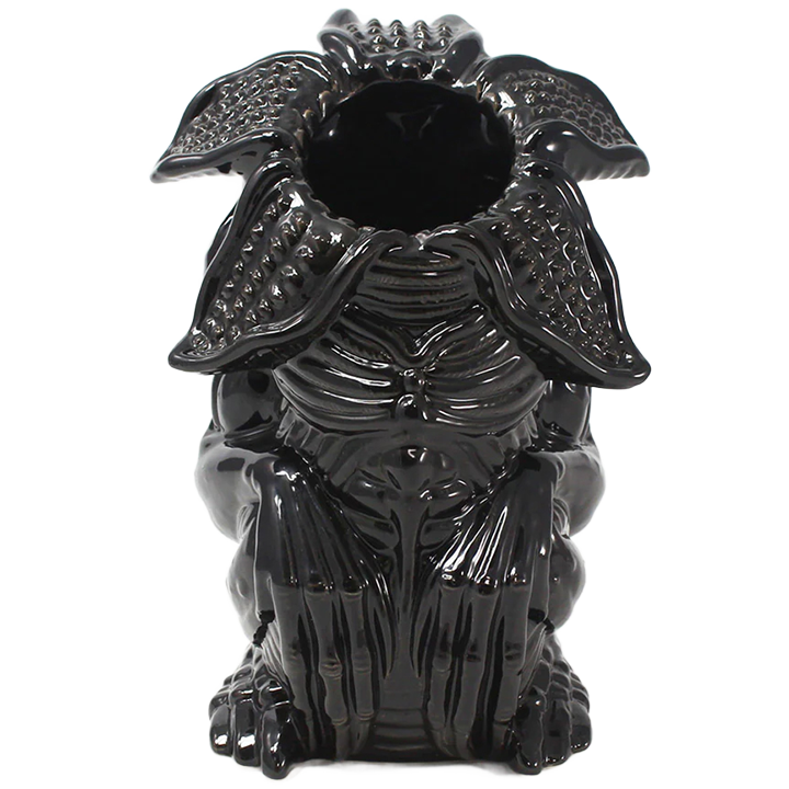 This ceramic cocktail mug is inspired by the Demogorgon monster from the Upside Down in the Netflix show Stranger Things. It was designed by Florian Bertmer and manufactured by Tiki Farm. This version of the mug is glazed in a Black Gloss.