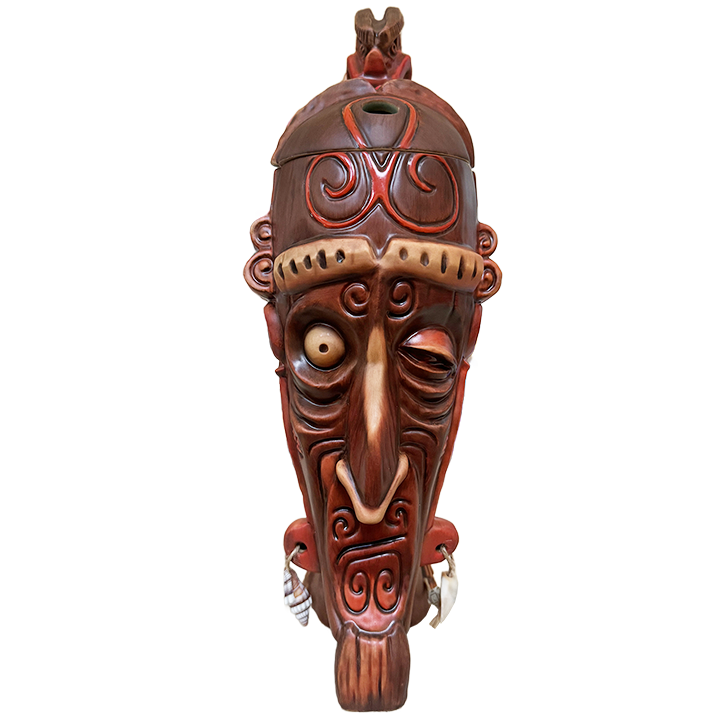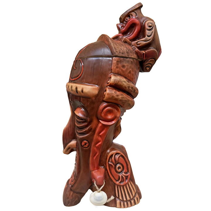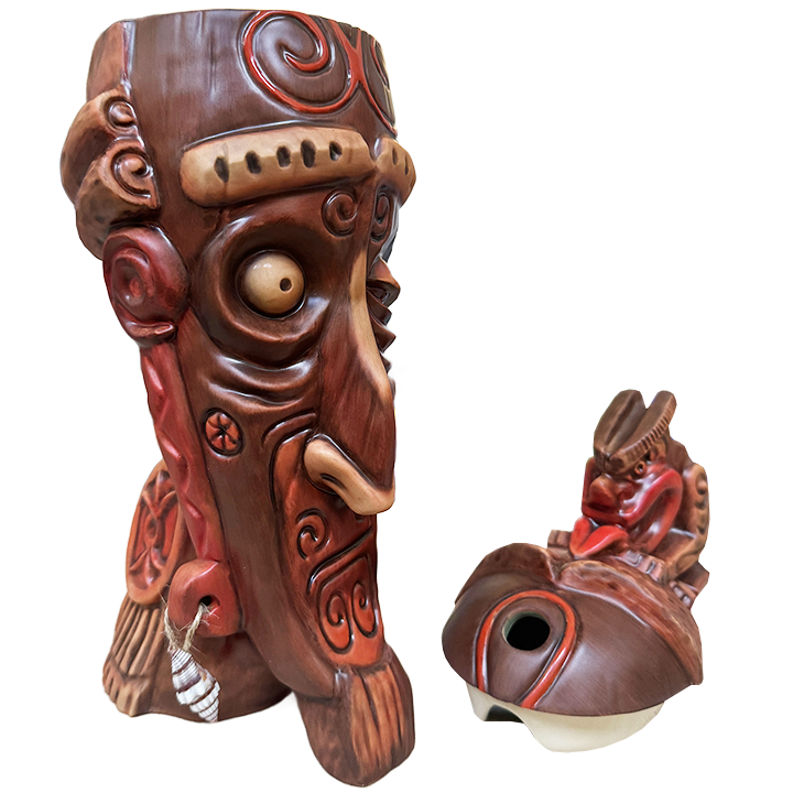 This two-piece ceramic cocktail mug was designed for Strong Water Anaheim by Kevin & Jody, who designed some of the earliest tiki mugs for Disneyland. It was designed to immortalize the bar’s fictious Admiral Horatio Nelson. Each mug is numbered and comes in a custom box. Kevin & Jody were present for the release celebration of this mug on October 21st, 2023, and “Nelson’s Blood” cocktails were served in toast to the Admiral.