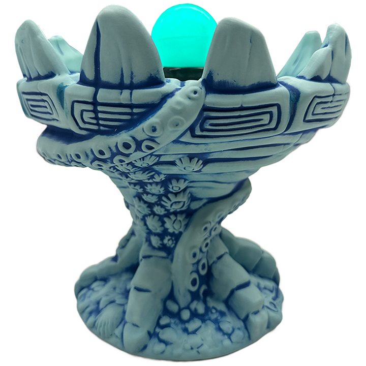 Released in the same year as Disney’s live action film The Little Mermaid, this ceramic cocktail bowl depicts the cauldron Ursula uses to cast her spells. This version is unique to Trader Sam’s Grog Grotto located within Disney’s Polynesian Village Resort. Other editions were sold at locations including Trader Sam’s Enchanted Tiki Bar and Club 33.