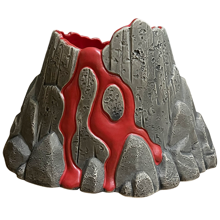 This ceramic cocktail mug was designed by VanTiki to celebrate the 10th Anniversary of Hale Pele in Portland, Oregon. It depicts the Hale Pele storefront, decorated with 22k gold luster, as if it were located within the side of a volcano. Faux lava drips down the back of the mug forming the number “10”. Only 150 mugs were produced and sales began on August 21, 2022. Henrik and Denise Van Ryzin from VanTiki were on location to sign mugs.