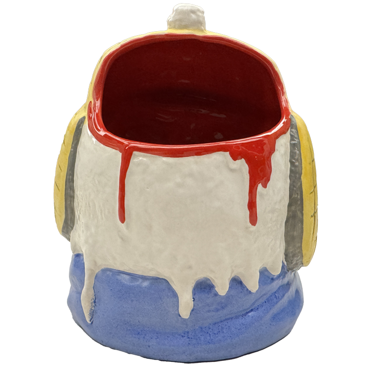 Designed by Lost Temple Traders and manufactured by Munktiki Imports, this ceramic cocktail mug depicts the severed head of a zombie snowman wearing a scarf and a hat. This is the Frozen Terror (Yellow Hat) Edition which is limited to 250 pcs.